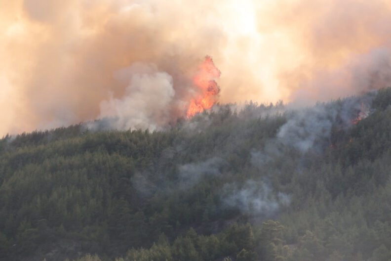 Yangında 3 köy boşaltılırken 1 ev yanarak kül oldu. Yangına orman araözlerinin yanı sıra 7 helikopter ve 3 yangın söndürme uçağı müdahale ediyor.