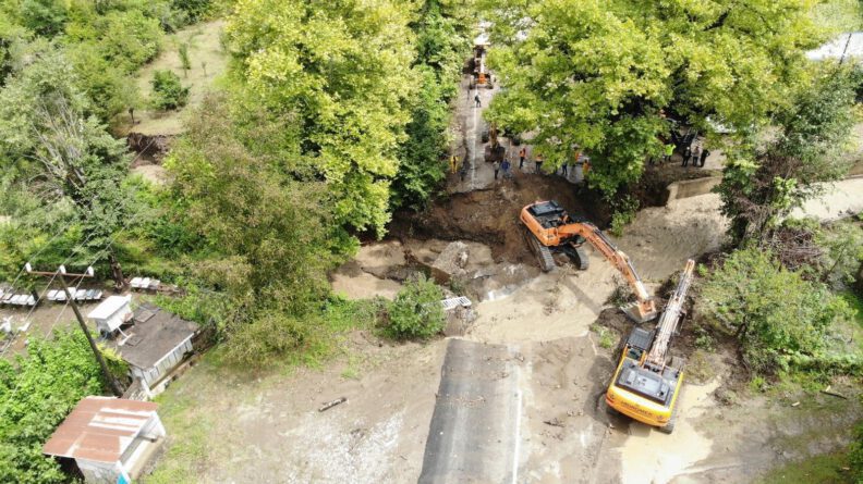 Kara yolları tarafından bölgeye çok sayıda ekskavatör sevk edilirken, ekipler yolu ulaşıma açmak için çalışmalara başladı.