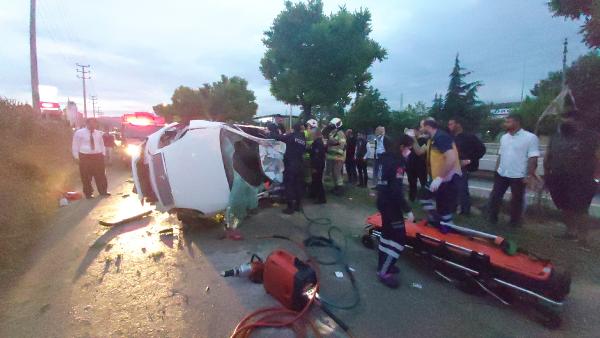 Kaza, dün akşam Bursa-Yalova karayolunun Ovaakça mevkisinde meydana geldi. Yalova’dan Bursa yönüne giden A.Ç. yönetimindeki 11 AAP 751 plakalı otomobil, yağmur nedeniyle kayganlaşan yolda, aşırı hız nedeniyle kontrolden çıktı. Otomobil, önce bariyerlere, ardından da yol kenarındaki ağaçlara çarpıp, takla attı. 4 takla atıp, ters dönen otomobilin sürücüsü A.Ç. ile yanındaki arkadaşları C.B. ve A.Y. sıkıştı. İhbar üzerine kaza yerine çok sayıda sağlık, itfaiye ve polis ekibi sevk edildi. 3 arkadaş, itfaiye ekiplerince araçtan çıkarıldı. Sağlık ekiplerinin ilk müdahalesinin ardından da Bursa Şehir Hastanesi’ne kaldırılarak, tedaviye alındı. A.Ç. ve A.Y.’nin sağlık durumlarının ciddiyetini koruduğu öğrenildi.