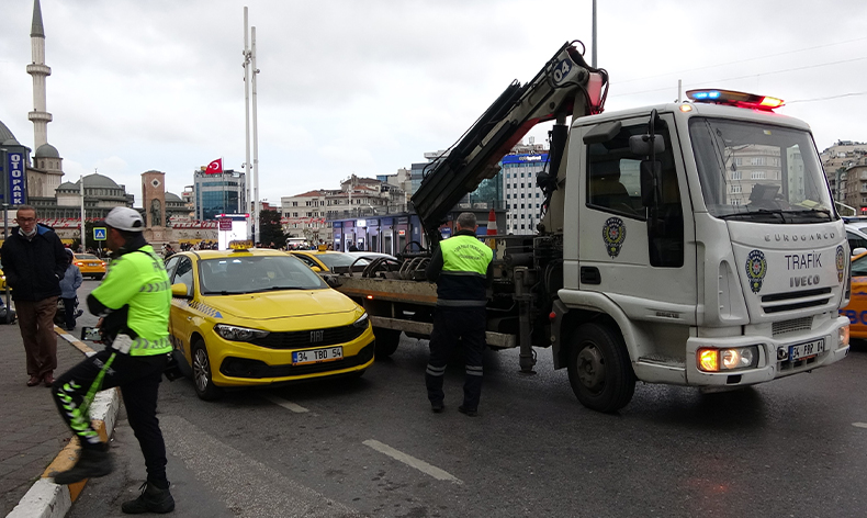 Trafik ekiplerinin, şikayet üzerine gerçekleştirdiği operasyon sonucunda Taksim’de bir otelin önünde yakalanan taksi şoförü, suçlamaları reddetti. Trafik polisleri, taksi şoförüne 4 bin 64 lira ceza yazdı. Cezadan sonra, taksi işletme ruhsatı ve şoför kartı iptal edildi. Olay yerine trafik çekicisi çağırıldı ve taksi bağlandıktan sonra yediemin otoparkına götürüldü.
