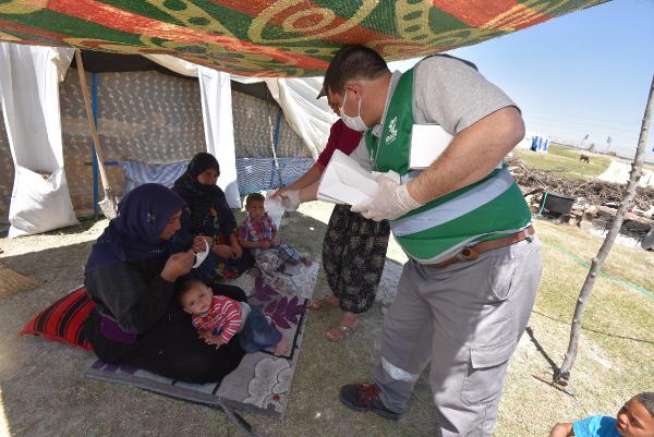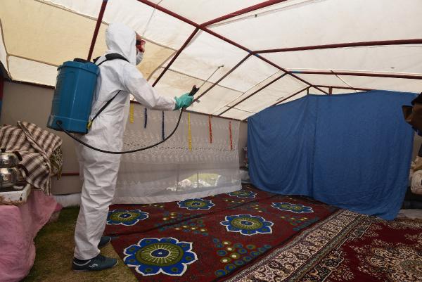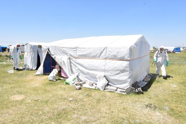 Tarım işçilerin çadırları dezenfekte edildi