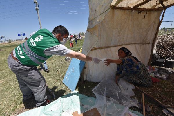 Adem YILDIZ/KONYA, (DHA)- KONYA’da, Karatay Belediyesi, koronavirüs tedbirleri kapsamında tarım işçilerin kaldığı çadırları dezenfekte edip, işçi ve ailelerine maske dağıttı.