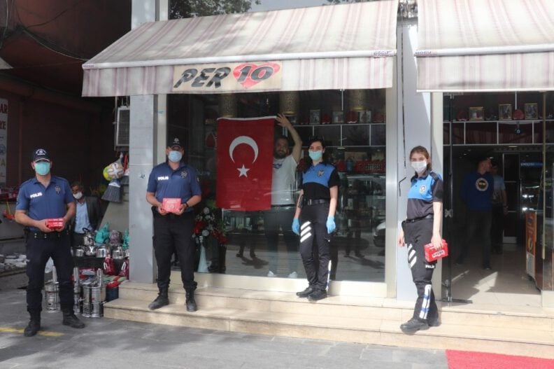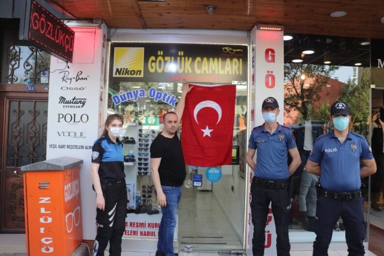 19 Mayıs Atatürk’ü Anma, Gençlik ve Spor Bayramı gibi anlamlı bir günde oldukça anlamlı bir hediye alan esnaf ise hem teşekkürlerini iletti hem de hediye edilen Türk bayraklarını iş yerlerine astı. İş yerleri, asılan Türk bayraklarıyla ilçe baştan sona bayraklarla donatılmış oldu.
