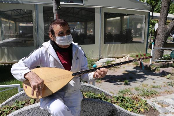 Ruhan YALÇIN/TEKİRDAĞ, (DHA)- TEKİRDAĞ’da, Hamdi Sedeler(75) sokağa çıkan 65 yaş ve üstü vatandaşlara bağlama çalıp, türküler söyledi.