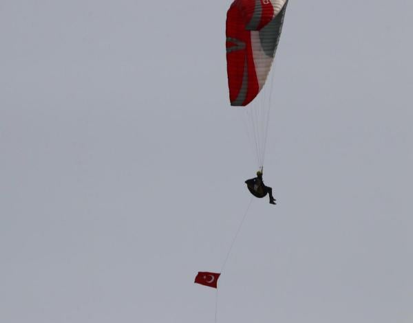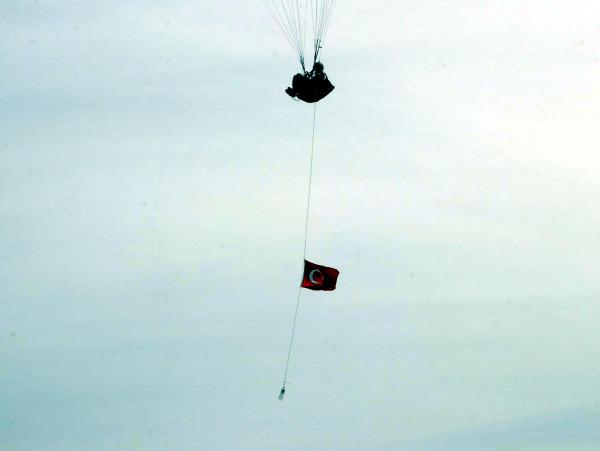 Mehmet YİRUN- Ruhan YALÇIN/TEKİRDAĞ, (DHA)- TEKİRDAĞ’da, 19 Mayıs Atatürk’ü Anma, Gençlik ve Spor Bayramı kutlamaları kapsamında yamaç paraşütçüleri Ganos Dağı etiklerinden uçuş yaparak gökyüzünde Türk bayrakları açtı.
