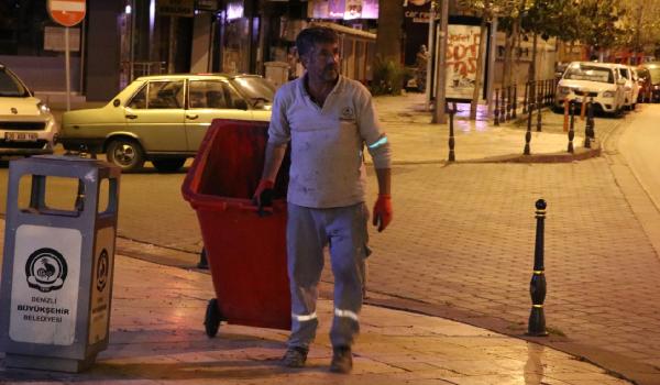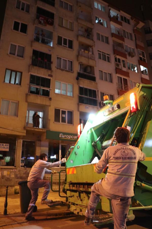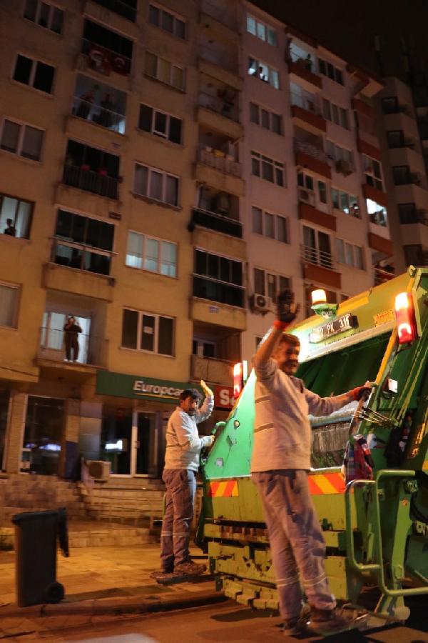 DENİZLİ’de, sokağa çıkma kısıtlaması nedeniyle evlerinden çıkamayan vatandaşlar, saat 21.00’de çöp toplayan temizlik işçilerinin 1 Mayıs Emek ve Dayanışma Günü’nü balkonlardan alkışlarla kutladı.