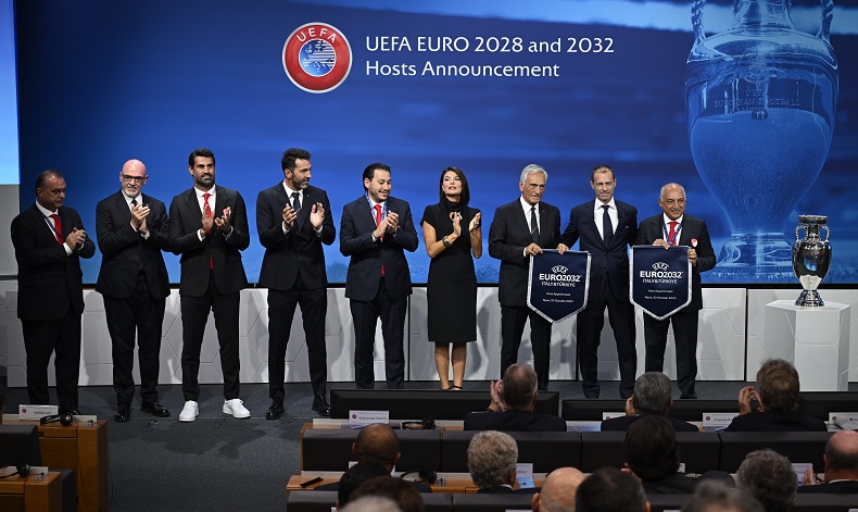 Yapılan sunumların ardından UEFA Yönetim Kurulu düzenlenen törenle EURO 2028’in Birleşik Krallık-İrlanda Cumhuriyeti ortak ev sahipliğinde, EURO 2032’nin ise İtalya-Türkiye ortak ev sahipliğinde yapılacağını açıkladı.