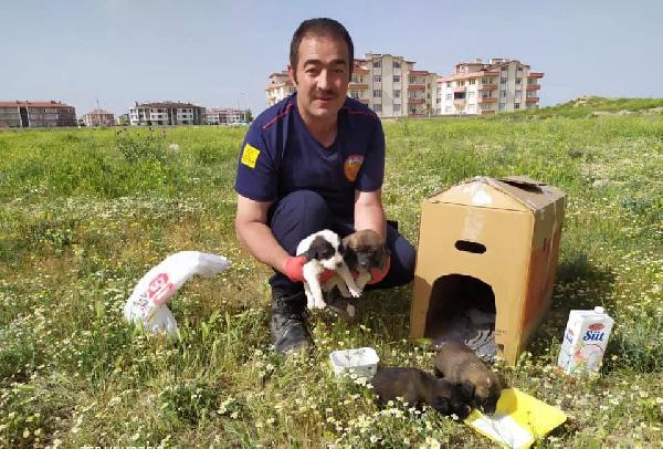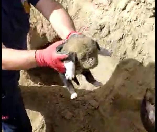 Toprak altında mahsur kalan yavru köpekler kurtarıldı