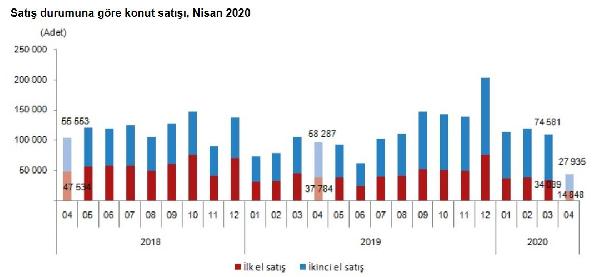 Diğer konut satışları 2020 Nisan ayında Türkiye genelinde bir önceki yılın aynı ayına göre yüzde 65.1 azalarak 25 bin 695’e geriledi.