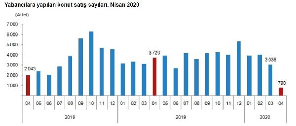 Yabancılara yapılan konut satışları da Nisan’da geçen yılın aynı ayına göre yüzde 78.8 azalarak 790’a geriledi.