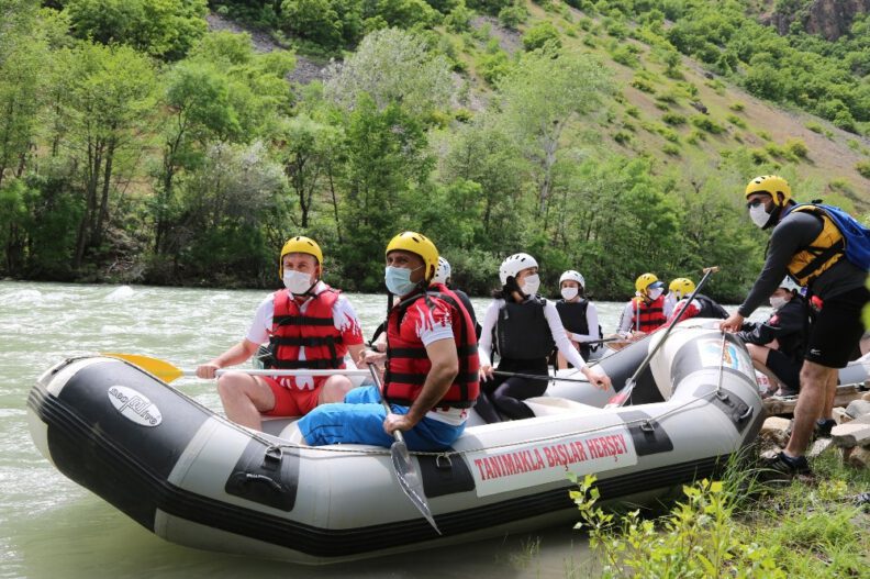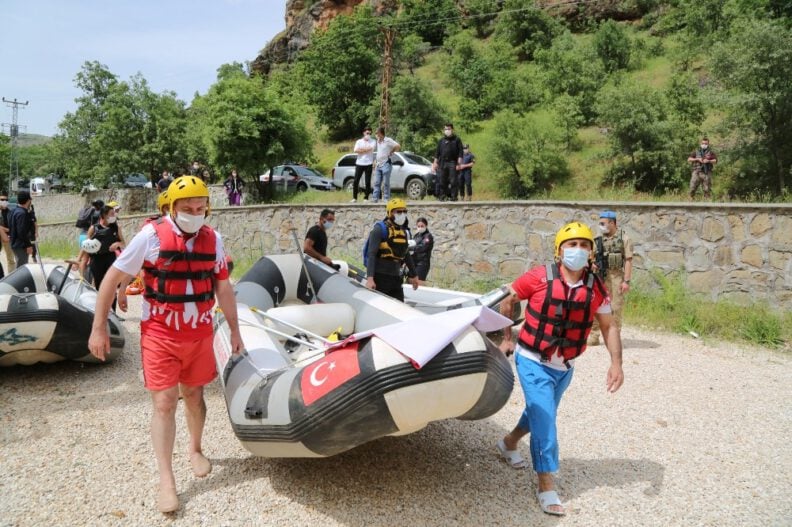 19 Mayıs Atatürk’ü Anma, Gençlik ve Spor Bayramı kapsamında Vali Tuncay Sonel’in de katılımıyla Munzur Nehri’nde rafting etkinliği gerçekleştirildi. Ovacık karayolu Anafatma mevkiinde başlayan etkinlikte Vali Tuncay Sonel de rafting yaptı. Korona virüs tedbirleri kapsamında rafting botlarına 4’erli sporcu grupları bindi. Yaklaşık bir saat süren rafting kent merkezinde Mavi Köprü mevkiinde sona erdi, ardından sporcular “Tanımakla Başlar Herşey ve Evde Kal Tunceli” pankartı açtı.