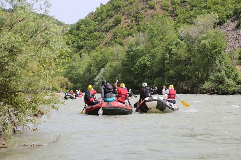 Tunceli’de baharla coşan Munzur Nehri’nde Vali Tuncay Sonel ve beraberindekiler Gençlik Haftası etkinlikleri kapsamında rafting yaparak sezonu açtı.