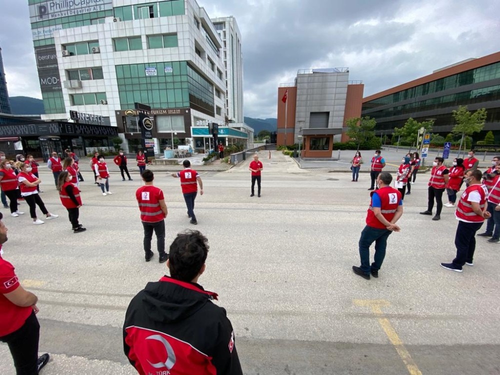 Saha çalışmaları sırasında sağlığımız ve güvenliğimizi korumak için görevlerinin başında olan güvenlik görevlilerimiz de unutulmadı. Türk Kızılay Bursa Şube Başkanı Davut Gürkan, yol güzergahında görevlerinin başında bulunan güvenlik görevlilerimize tatlı ikramında bulundu ve maske dağıttı.