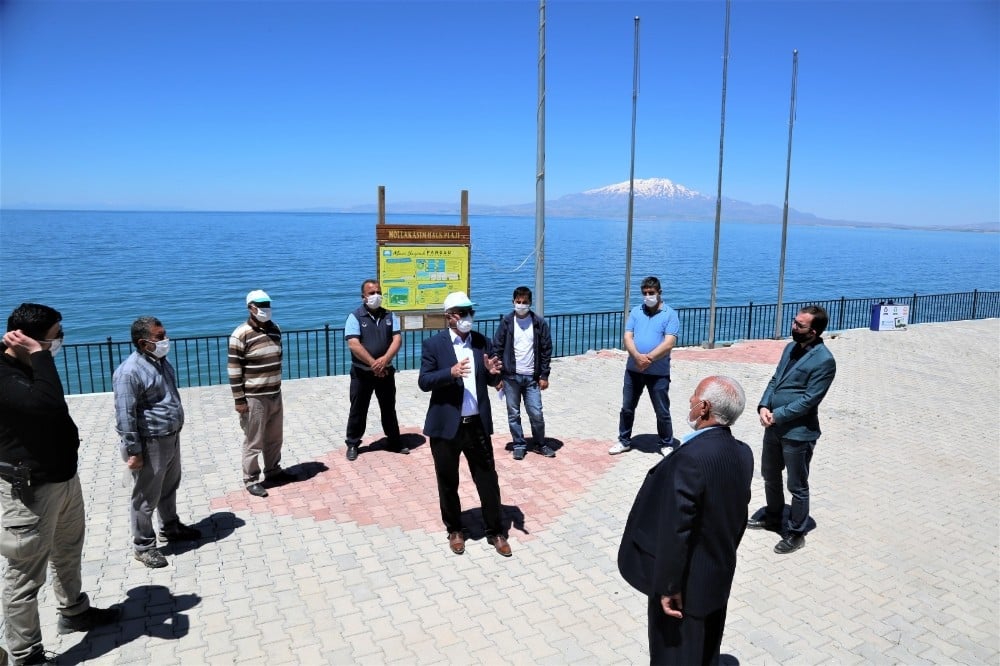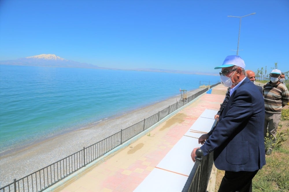 VAN (İHA) – Van’ın Tuşba Belediye Başkanı Salih Akman, korona virüs salgını nedeniyle bugüne kadar kapalı olan havuz ve plajların normalleşme süreciyle birlikte 1 Haziran’dan itibaren müşteri kabulüne başlayacak olmasından dolayı Türkiye’nin iç sulardaki ilk ve tek mavi bayraklı plajı olan ‘Mollakasım Mavi Bayraklı Halk Plajı’nda incelemelerde bulundu.