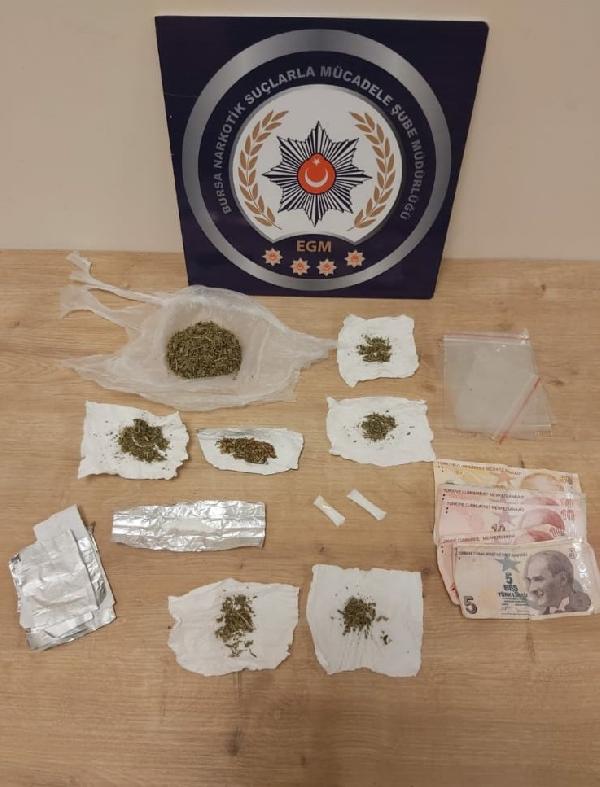 Bursa Emniyet Müdürlüğü Narkotik Suçlarla Mücadele Şube Müdürlüğü ekipleri, uyuşturucu satıcılarına yönelik yürütülen soruşturma kapsamında, dün gece operasyon düzenledi. Fiziki ve teknik takibin ardından şüphelilerin adreslerine yapılan eş zamanlı baskında R.Ö., G.C., S.L., A.B., D.A. ve C.K. gözaltına alındı. Şüphelilerin ev, iş yeri ve araçlarında yapılan aramalarda; 180 gram toz esrar, 155 gram metamfetamin, satışa hazır olarak paketlenmiş bir miktar kannabinoid ve uyuşturucu madde ticaretinden elde edildiği değerlendirilen para ele geçirildi. Şüphelilerin, uyuşturucuyu elektrik faturasına sararak, sakladığı görüldü.