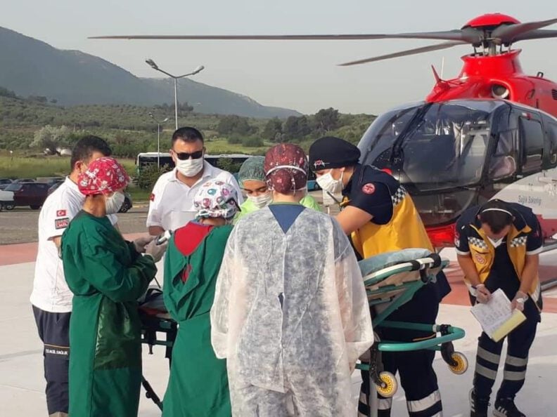 Manisa’da, iftar sonrası sıcak çaydanlığın üzerine düşmesi sonucu vücudunda yanıklar oluşan ve hayati tehlikesi bulunan bir yaşındaki Alpaslan Demir, AK Parti Manisa Milletvekili Mehmet Ali Özkan’ın devreye girmesiyle helikopter ambulansla Ankara Şehir Hastanesine sevk edildi.