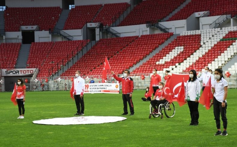 Diyarbakır Valisi ve Büyükşehir Belediye Başkan Vekili Hasan Basri Güzeloğlu, yeni tip korona virüse karşı alınan tedbirler kapsamında toplu olarak kutlanılmayan 19 Mayıs Atatürk’ü Anma, Gençlik ve Spor Bayramının 101. yılını Diyarbakır Stadyumunda milli sporcularla ay yıldızlı bayraklar eşliğinde İstiklal Marşını okuyarak kutladı.