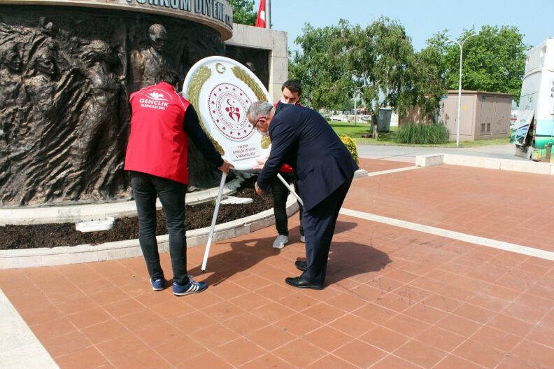 Korona virüs tedbirleri kapsamında bu yıl 19 Mayıs Gençlik ve Spor Bayramı da tören düzenlenmeden gerçekleştirilecek. Bayram kapsamında kutlanan Gençlik Haftasının startı da verildi. 15 Temmuz Demokrasi ve Cumhuriyet Meydanı’nda Gençlik ve Spor İl Müdürü Mehmet Kalyon, gençlik merkezi müdürleri ile bir grup gencin katılımı ile gerçekleştirilen tören Atatürk anıtına çelenk sunulması ile başladı. Mehmet Kalyon tarafından anıta çelenk sunulması sonrasında ise saygı duruşunda bulunularak, İstiklal marşı okundu. Sosyal mesafe kuralına uyulan ve katılımcıların hepsinin maske taktığı tören toplu fotoğraf çekimi ile sona erdi.