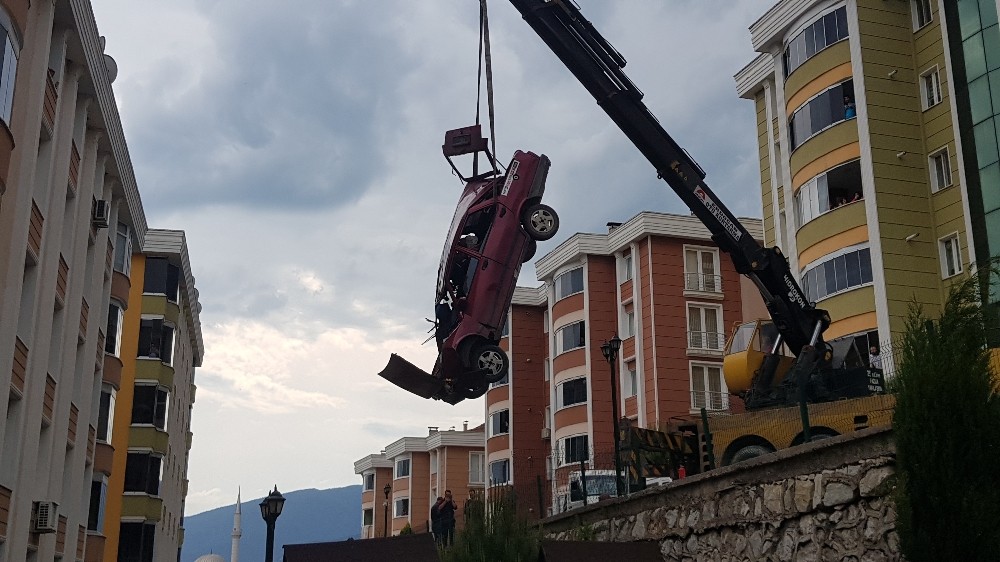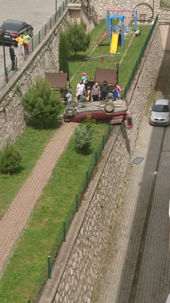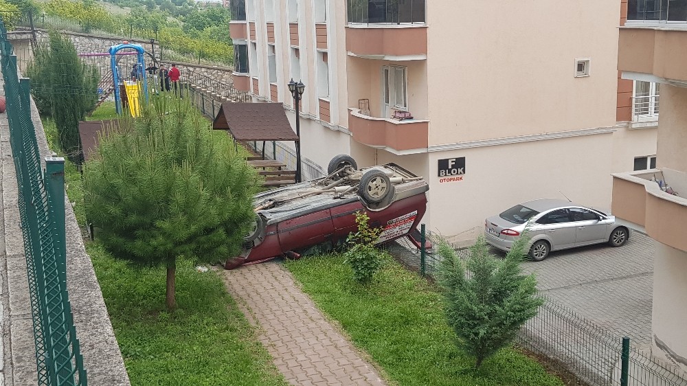 Karabük’te bir sürücü geri vites yerine ileri vitese takınca 3 metre yükseklikten sitenin parkına düştü. Ters devrilen otomobil içindeki 2 kişi site bahçesindeki vatandaşlar tarafından çıkarılarak ambulansla hastaneye kaldırıldı.