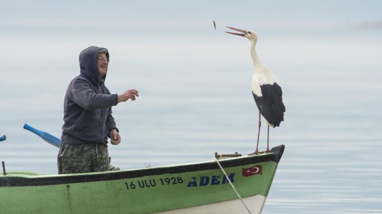 Yaren leylekle dostluklarını dünyanın bildiği Adem Yılmaz, “Geçen yıl 4 yavrusu olmuştu. Bu yıl 3 yavrusu oldu. Yavrusu yeni olduğu zaman benim kayığıma da gelmiyor. 1 hafta uğramaz, yavruları ile ilgilenir, sonra gelir. Geçen yıl da aynısı olmuştu. Şimdi yavrularını eşi ile birlikte büyütüyorlar. Sıra ile yavrularının üstünde yatıyorlar. Biri gidip yiyecek getiriyor, diğeri yavruların başında bekliyor. Biraz daha büyüdükten sonra yem aramaya çıkarlar” dedi.