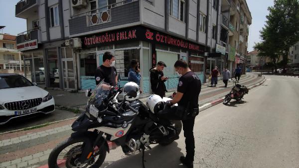 İnegöl İlçe Emniyet Müdürlüğü’ne bağlı ekipler, Sinanbey Mahallesi Murat Caddesi üzerinde seyir halinde olan motosikletin sürücüsüne dur ihtarında bulundu. Kaçmaya çalışan gençler, kısa sürede yakalandı. Yapılan kimlik kontrolü ve motosiklet üzerinde yapılan inceleme sonucunda sürücü İbrahim K.(18)’ ya ehliyetsiz araç kullanmak, sokağa çıkma yasağına uymama ve 20 yaş altı kısıtlamasına uymama nedeniyle 11 bin TL, yanındaki arkadaşı Anas İ.’ye(16) 6 bin 360 TL para cezası uygulandı. Sigortası olmayan motosiklet, çekici yardımıyla otoparka çekildi.