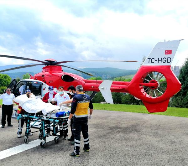 Riskli gebelik nedeniyle 3 gün önce Kastamonu’dan Karabük Üniversitesi Eğitim ve Araştırma Hastanesi’ne sevk edilen M.Ö., sezaryen ile doğum yaptı. Damarlarında pıhtılaşma tespit edilen M.Ö.’nün Ankara’ya sevk edilmesine karar verildi. Sağlık Bakanlığı’ na ait ambulans helikopter, Karabük İl Jandarma Komutanlığı’ndaki helikopter pistine iniş yaptı. M.Ö. sağlık ekipleri tarafından sedyeyle helikoptere taşındı. M.Ö. tedavisi için Ankara Şehir Hastanesi’ne gönderildi.