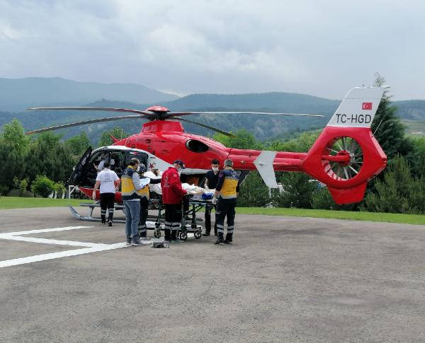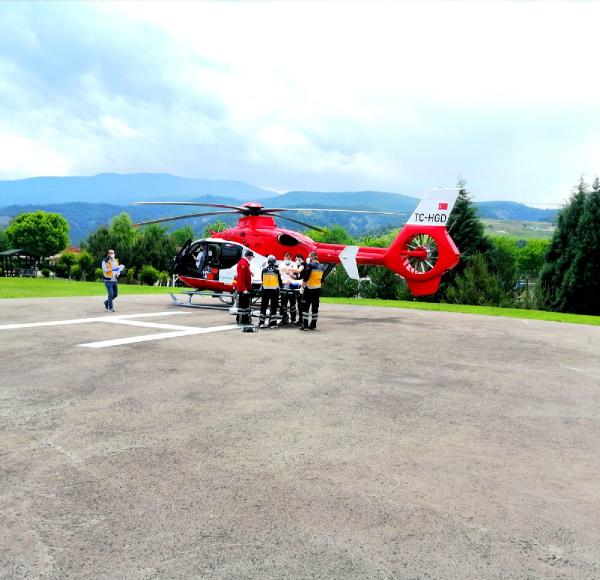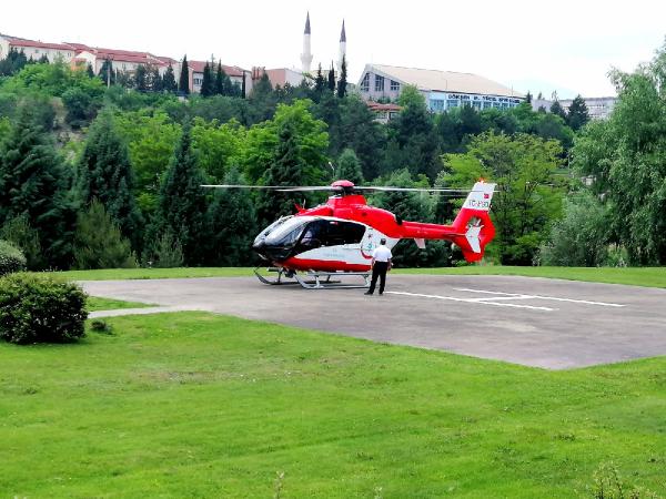 Riskli gebelik nedeniyle 3 gün önce Kastamonu’dan Karabük Üniversitesi Eğitim ve Araştırma Hastanesi’ne sevk edilen M.Ö., sezaryen ile doğum yaptı. Damarlarında pıhtılaşma tespit edilen M.Ö.’nün Ankara’ya sevk edilmesine karar verildi. Sağlık Bakanlığı’ na ait ambulans helikopter, Karabük İl Jandarma Komutanlığı’ndaki helikopter pistine iniş yaptı. M.Ö. sağlık ekipleri tarafından sedyeyle helikoptere taşındı. M.Ö. tedavisi için Ankara Şehir Hastanesi’ne gönderildi.