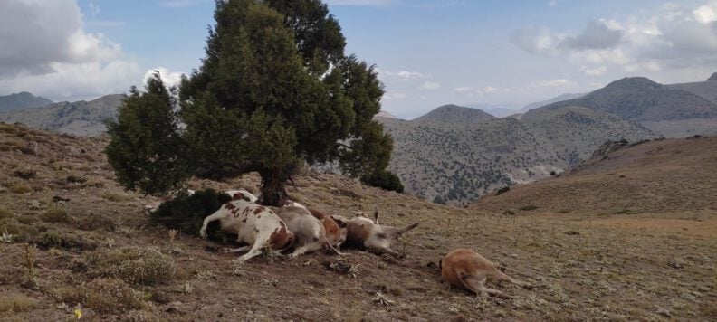 Geçtiğimiz günlerde Malatya’da etkili olan yağışlı hava hayatı olumsuz etkiledi. Arguvan ilçesi Şotik Mahallesi Eşkinli mevkiinde Davut Çıplak’a ait büyükbaş hayvanlar, yağmurun yağmasıyla ağacın altında toplandı. Yağmur esnasında yıldırımın hedefi olan ağaç çevresindeki 9 büyükbaş hayvan telef oldu.