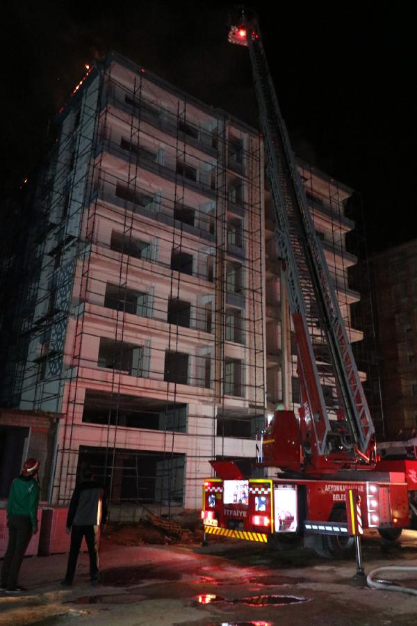 Afyonkarahisar’da yapımı devam eden kooperatif inşaat alanındaki bir bloğun çatısı yıldırım düşmesi sonucu yandı.