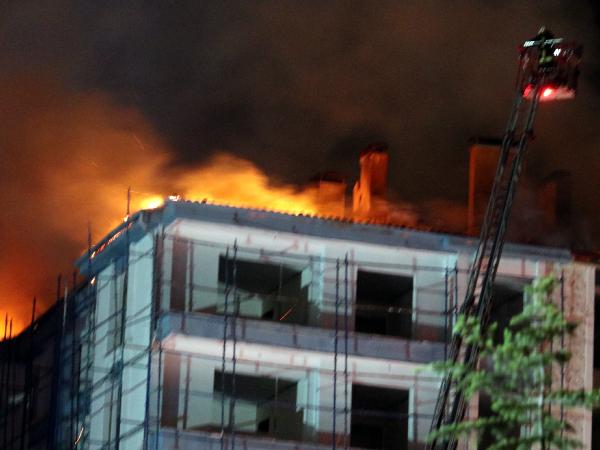 Yangında binanın çatısı büyük zarar gördü.