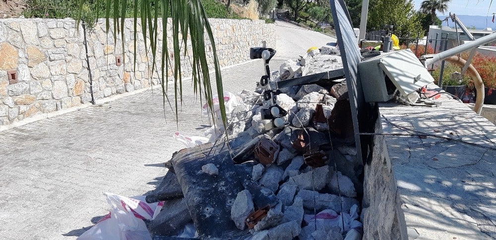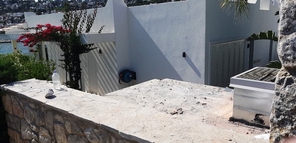 Bugün sabah saatlerinde yaklaşık 10 işçi Özdil’in villasına gelerek yıkım işlemine devam etti. Bodrum Belediyesi Yapı Kontrol Müdürlüğü ekipleri gözetiminde yıkım dün ve bugün saat 17.00’a kadar sürdü. Eve gelen 10 kişilik ekip dün pencere ve kapıları söküp jeneratör odasının yıkımına başlamıştı. Bugün ise işçiler jeneratör odasını ve bahçedeki bazı eklentileri yıkmaya devam etti.