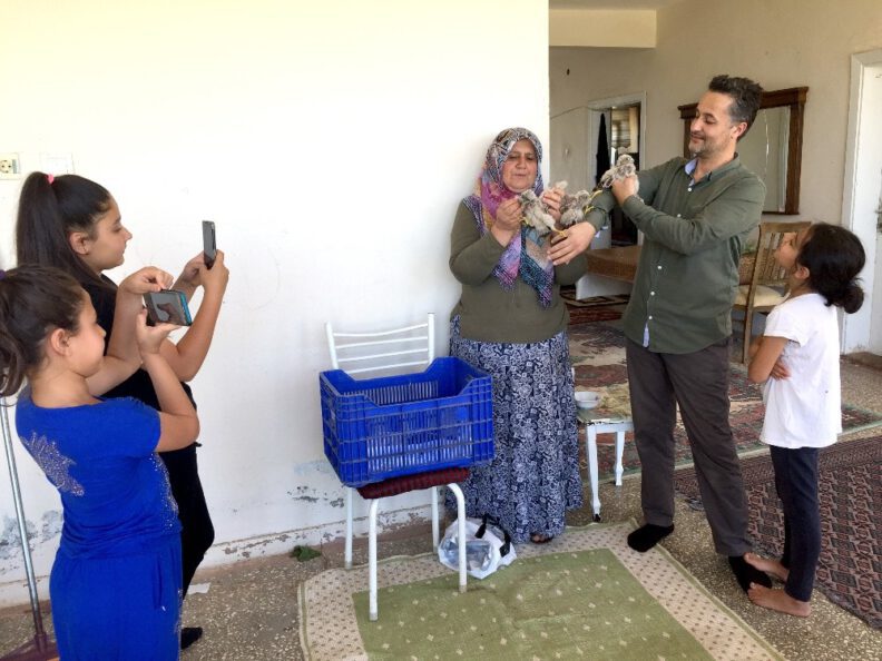 Yırtıcı kuş olan kartalı beslemeye çalışan aile fertleri yavruların pençeleme ve ısırmasından dolayı zaman zaman zorlansa da yavru kartallar başta çocukların ilgi odağı oldu.