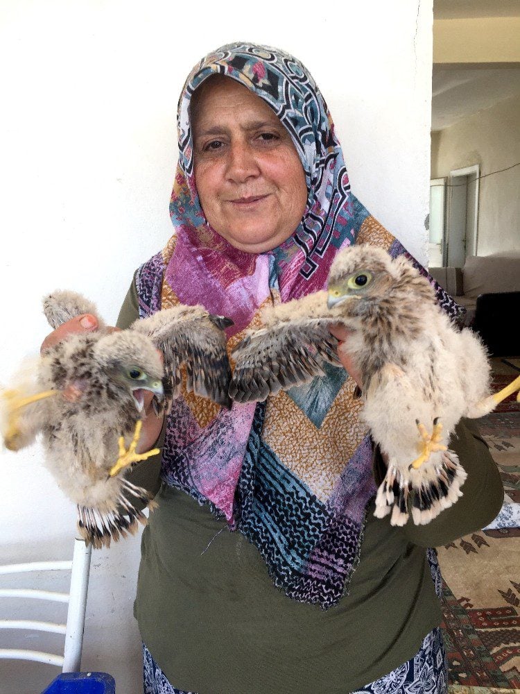 Kartal yavrularını besleyen Necla Karadağ, “Birkaç günden beri kartalları evde kendi elimle besliyorum. Sadece et yiyorlar. Anneleri bir hafta 10 günce vardı ancak şuan yok. Kaç günden beri görmüyoruz” ifadelerini kullandı.